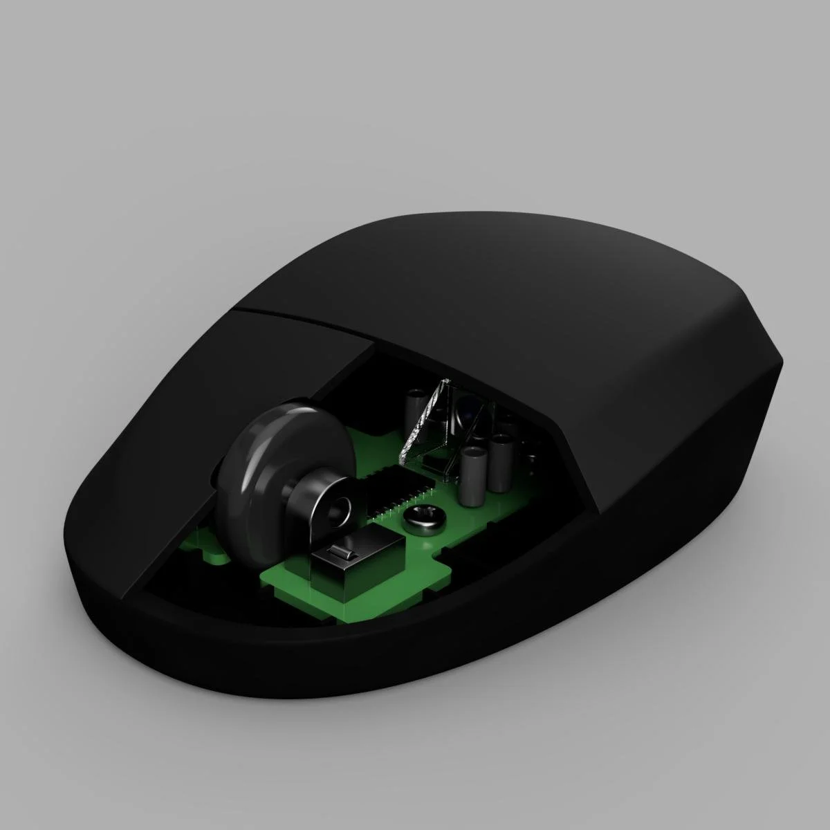 Measured and analyzed a real computer mouse as a reference. Modeled and rendered on Autodesk Fusion.