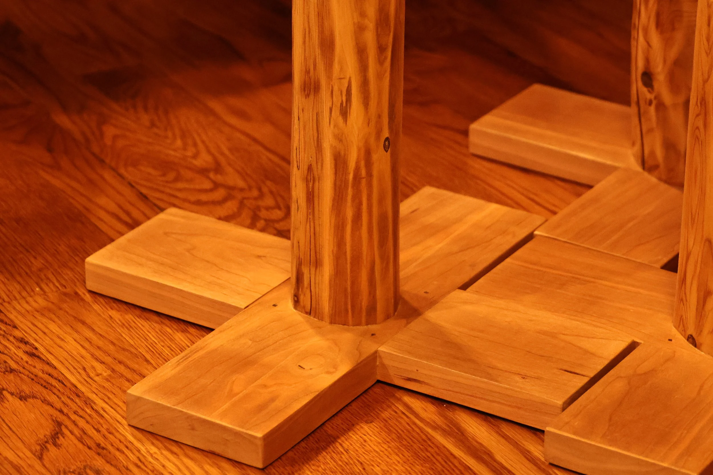 The stands were simple to attach, using wood glue and screws from underneath. Finally, I sanded the table tops to smooth out the joints, and the construction was finished.